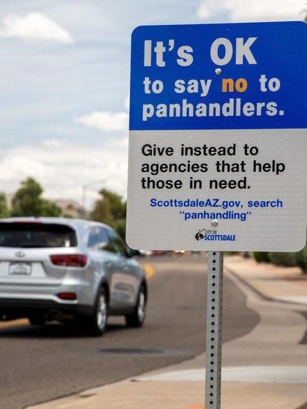 This past week, signs have gone up around Scottsdale suggesting that commuters in the city should say “no” to panhandlers at specific street corners in the affluent neighborhoods. This story from AZ Family Channel 3 even quotes a sign spinner at one of those corners I pass every morning for his insight into the panhandling taking place at the intersection of Shea and Scottsdale roads.